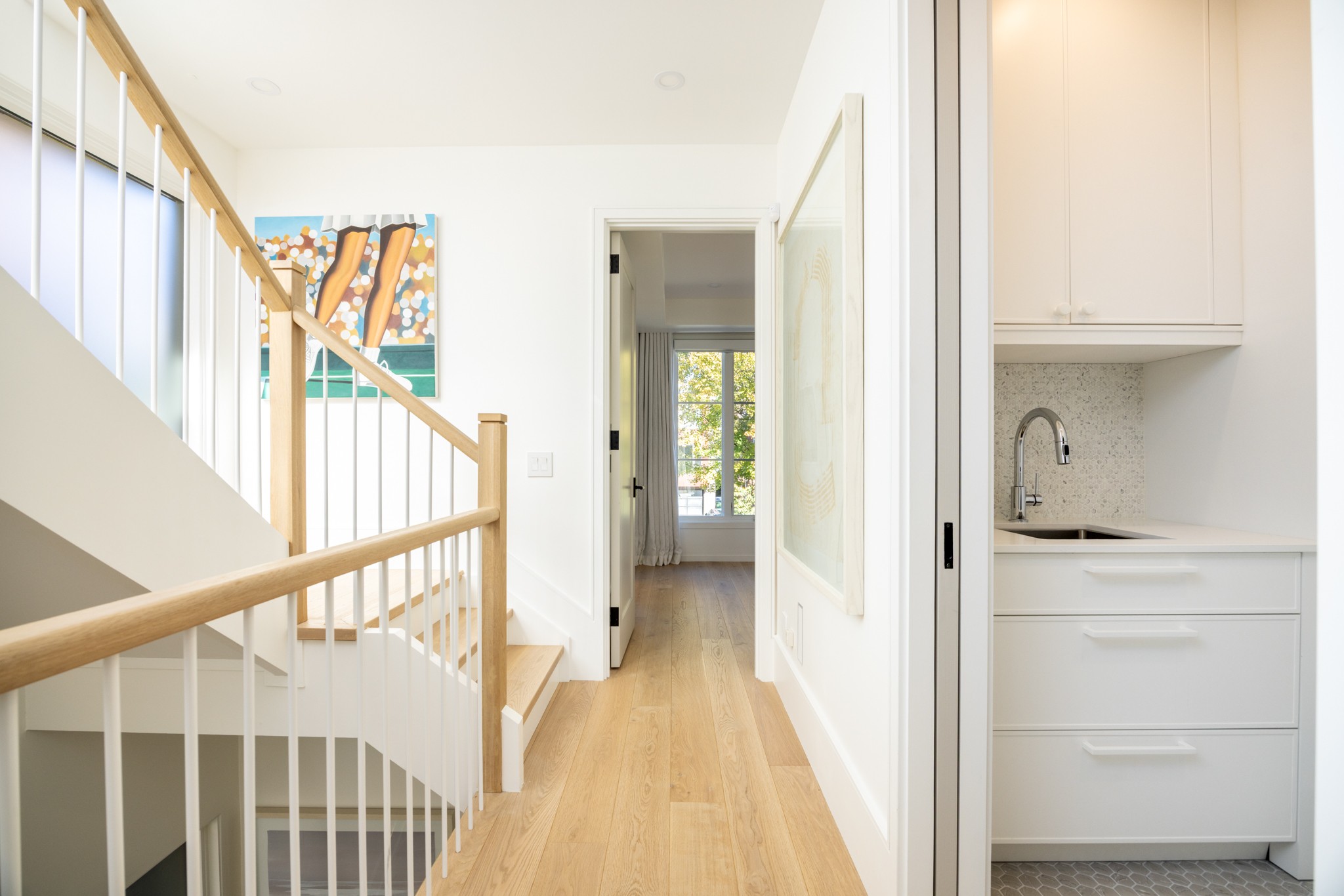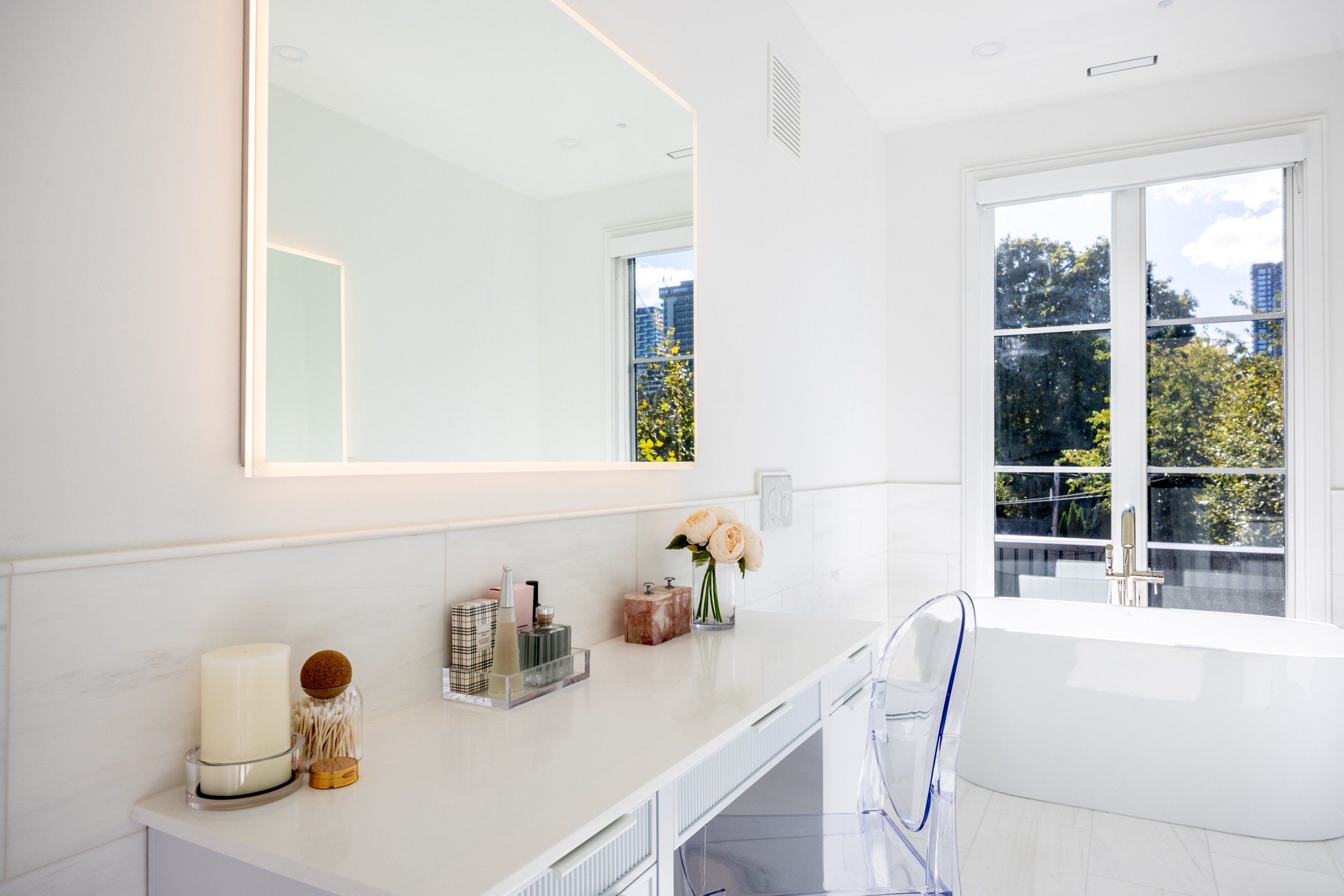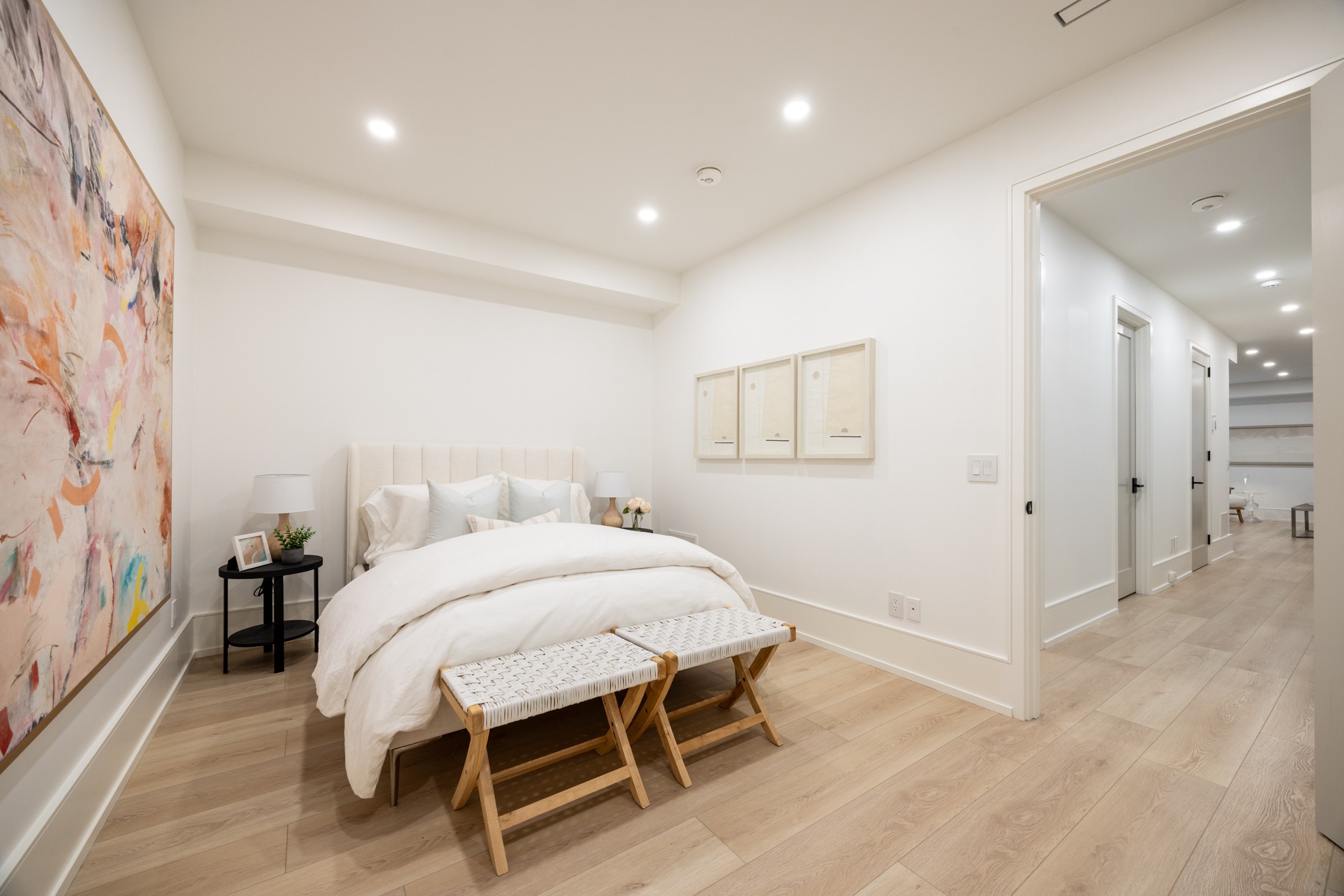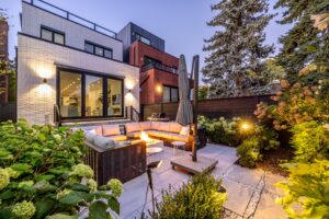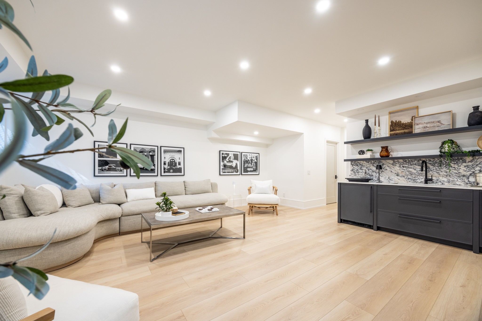 This contemporary custom-built detached residence showcases exceptional craftsmanship and meticulous space planning. Featuring a coveted southern exposure, it blends symmetry with serene, modern comfort across four finished levels, offering 4+1 bedrooms & 5 baths (3,637 sf total; 2,520 sf above grade). The private driveway, porch & side path include snow-melt for effortless year-round convenience. The main floor features 10′ ceilings, light European oak wide-plank flooring, solid-core doors & layered architectural lighting. A formal living room with fluted wood paneled gas fireplace opens to a spacious dining area with integrated storage ideal for family living and entertaining. The kitchen showcases custom millwork, quartzite slab counters and backsplash, integrated paneled appliances, dual pantries and a quartzite waterfall island with seating for four. A sun-filled family room connects seamlessly to the landscaped urban garden through 9′ sliding glass doors. The outdoor space includes a patio with lush plantings and a brick garden structure mirroring the home’s architecture. A striking powder room and side-entry mudroom complete this level. Upstairs, the primary suite offers city and treetop views, a marble-clad ensuite with freestanding tub, double vanity, make-up table, heated floors & walk-in closet. A second bedroom with ensuite and a full laundry room complete the floor. The third level features two bedrooms, a shared bath and walk-out to a 266sf private terrace with expansive views. The lower level has radiant-heated floors throughout, a recreation/media room with custom wet bar, guest/nanny/exercise room with 3-pc bath, rough-in for second laundry or mudroom and ample storage. Additional highlights: high-efficiency mechanicals, in-ground irrigation, landscape lighting, integrated audio and extensive custom millwork. Set on the sunny south side of Sheldrake in Sherwood Park steps to Summerhill Market, Mt. Pleasant & Yonge, parks, restaurants and top schools- zoned for Blythwood/ North Toronto and near Torontos leading private schools.