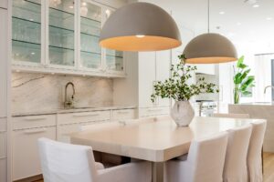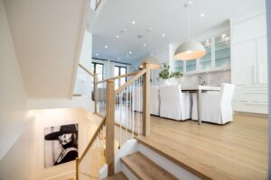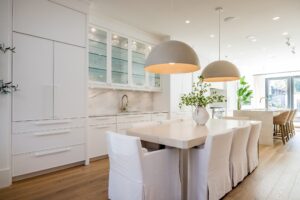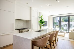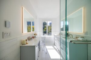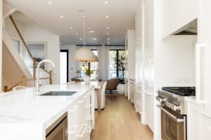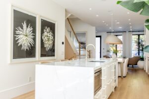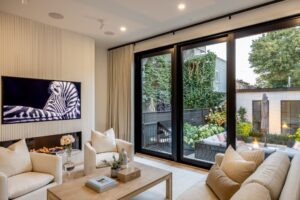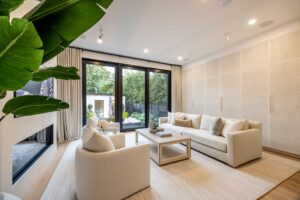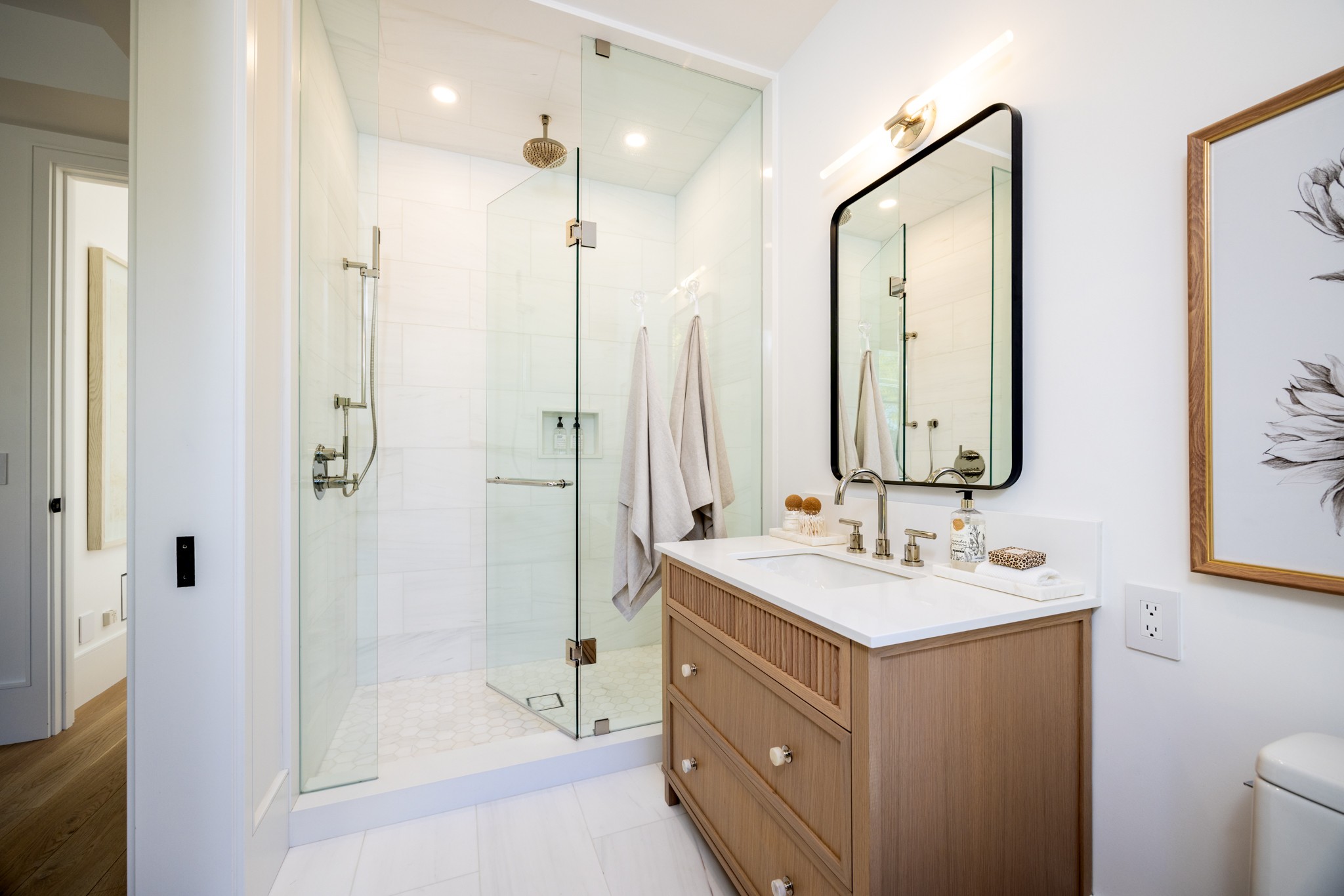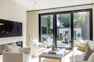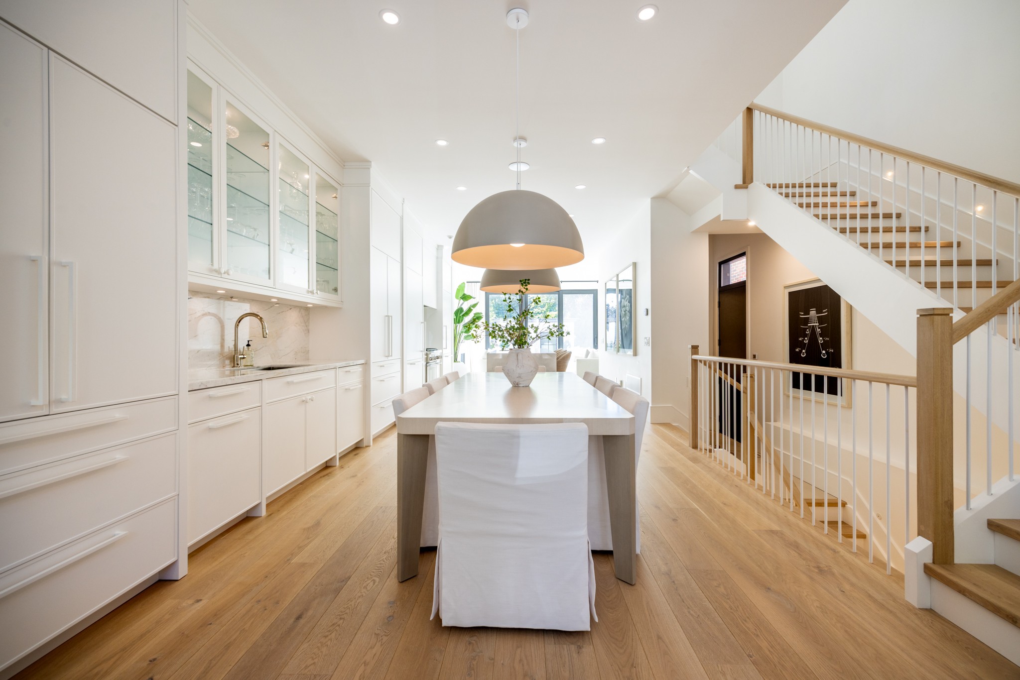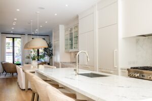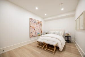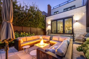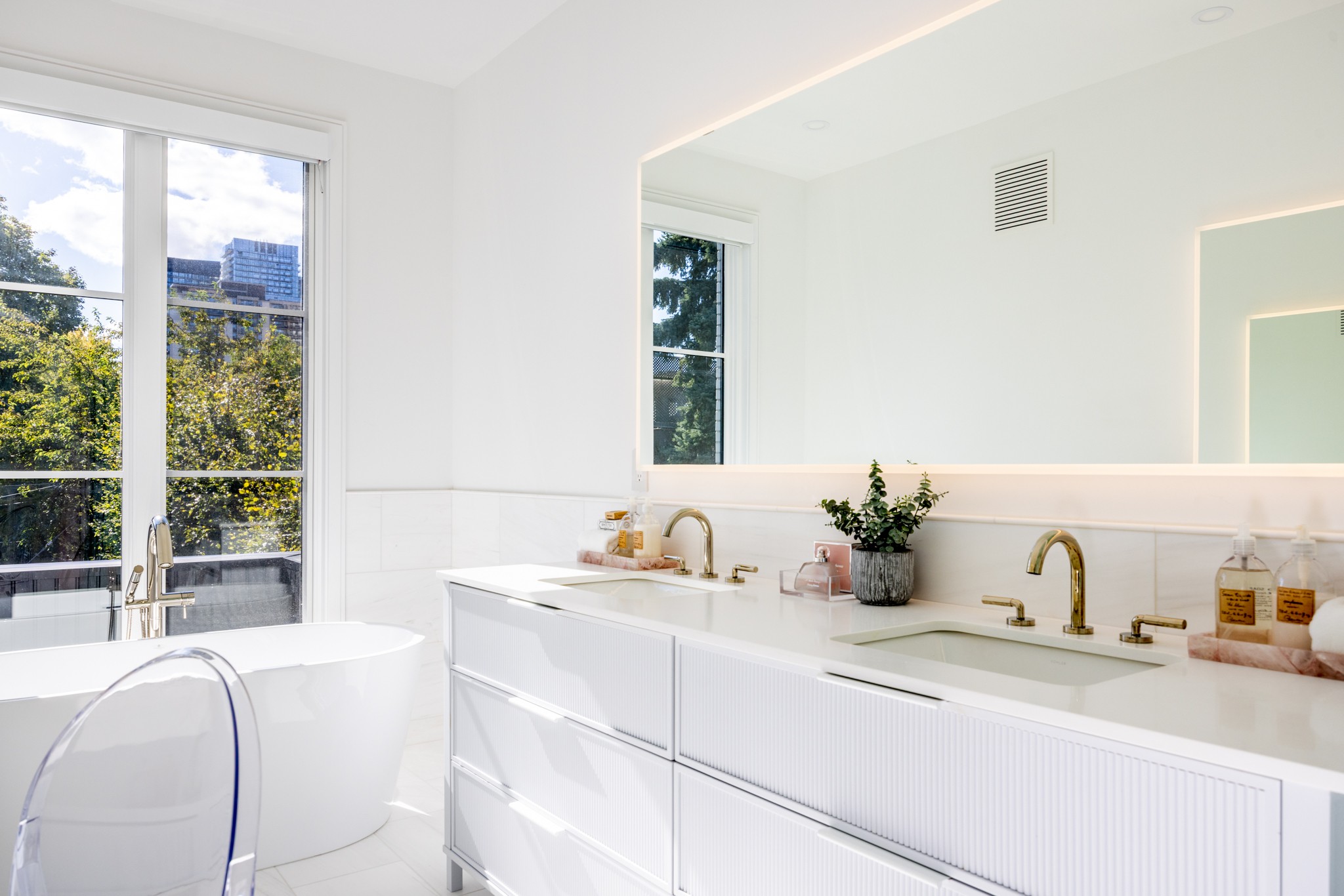 This contemporary custom-built detached residence showcases exceptional craftsmanship and meticulous space planning. Featuring a coveted southern exposure, it blends symmetry with serene, modern comfort across four finished levels, offering 4+1 bedrooms & 5 baths (3,637 sf total; 2,520 sf above grade). The private driveway, porch & side path include snow-melt for effortless year-round convenience. The main floor features 10′ ceilings, light European oak wide-plank flooring, solid-core doors & layered architectural lighting. A formal living room with fluted wood paneled gas fireplace opens to a spacious dining area with integrated storage ideal for family living and entertaining. The kitchen showcases custom millwork, quartzite slab counters and backsplash, integrated paneled appliances, dual pantries and a quartzite waterfall island with seating for four. A sun-filled family room connects seamlessly to the landscaped urban garden through 9′ sliding glass doors. The outdoor space includes a patio with lush plantings and a brick garden structure mirroring the home’s architecture. A striking powder room and side-entry mudroom complete this level. Upstairs, the primary suite offers city and treetop views, a marble-clad ensuite with freestanding tub, double vanity, make-up table, heated floors & walk-in closet. A second bedroom with ensuite and a full laundry room complete the floor. The third level features two bedrooms, a shared bath and walk-out to a 266sf private terrace with expansive views. The lower level has radiant-heated floors throughout, a recreation/media room with custom wet bar, guest/nanny/exercise room with 3-pc bath, rough-in for second laundry or mudroom and ample storage. Additional highlights: high-efficiency mechanicals, in-ground irrigation, landscape lighting, integrated audio and extensive custom millwork. Set on the sunny south side of Sheldrake in Sherwood Park steps to Summerhill Market, Mt. Pleasant & Yonge, parks, restaurants and top schools- zoned for Blythwood/ North Toronto and near Torontos leading private schools.