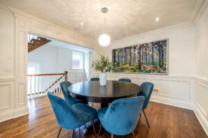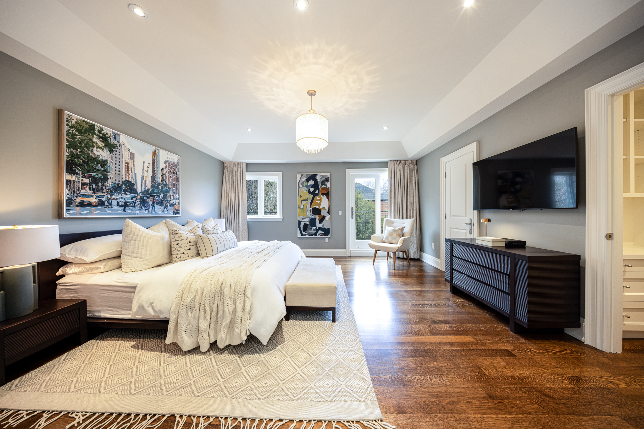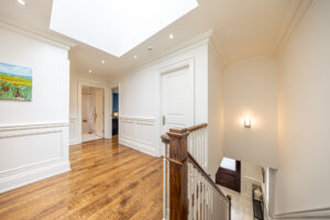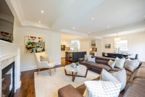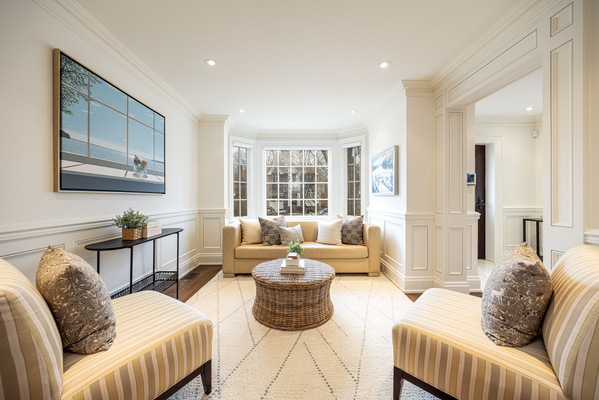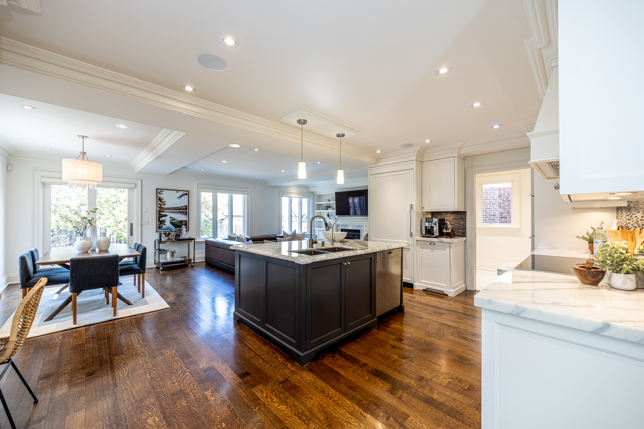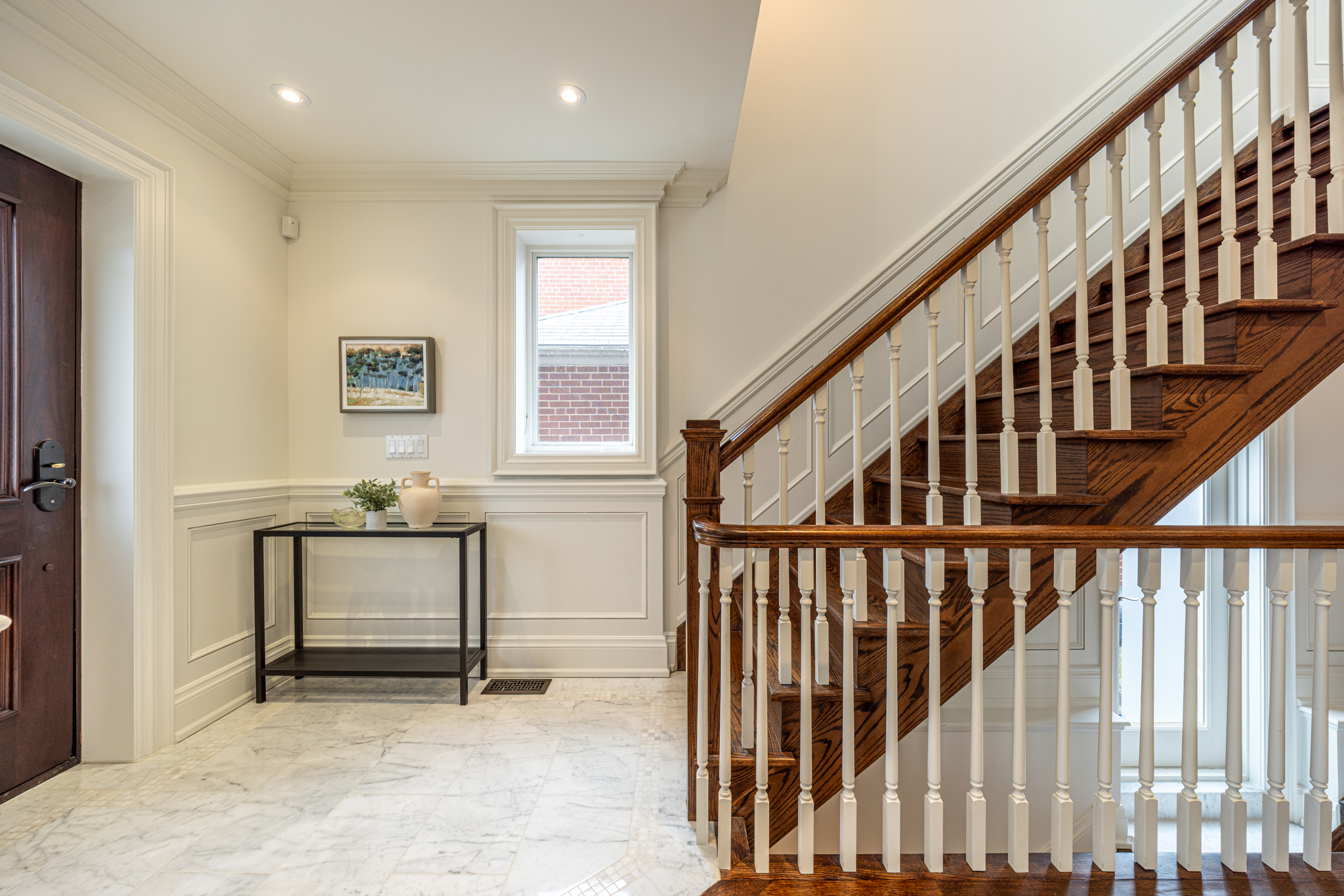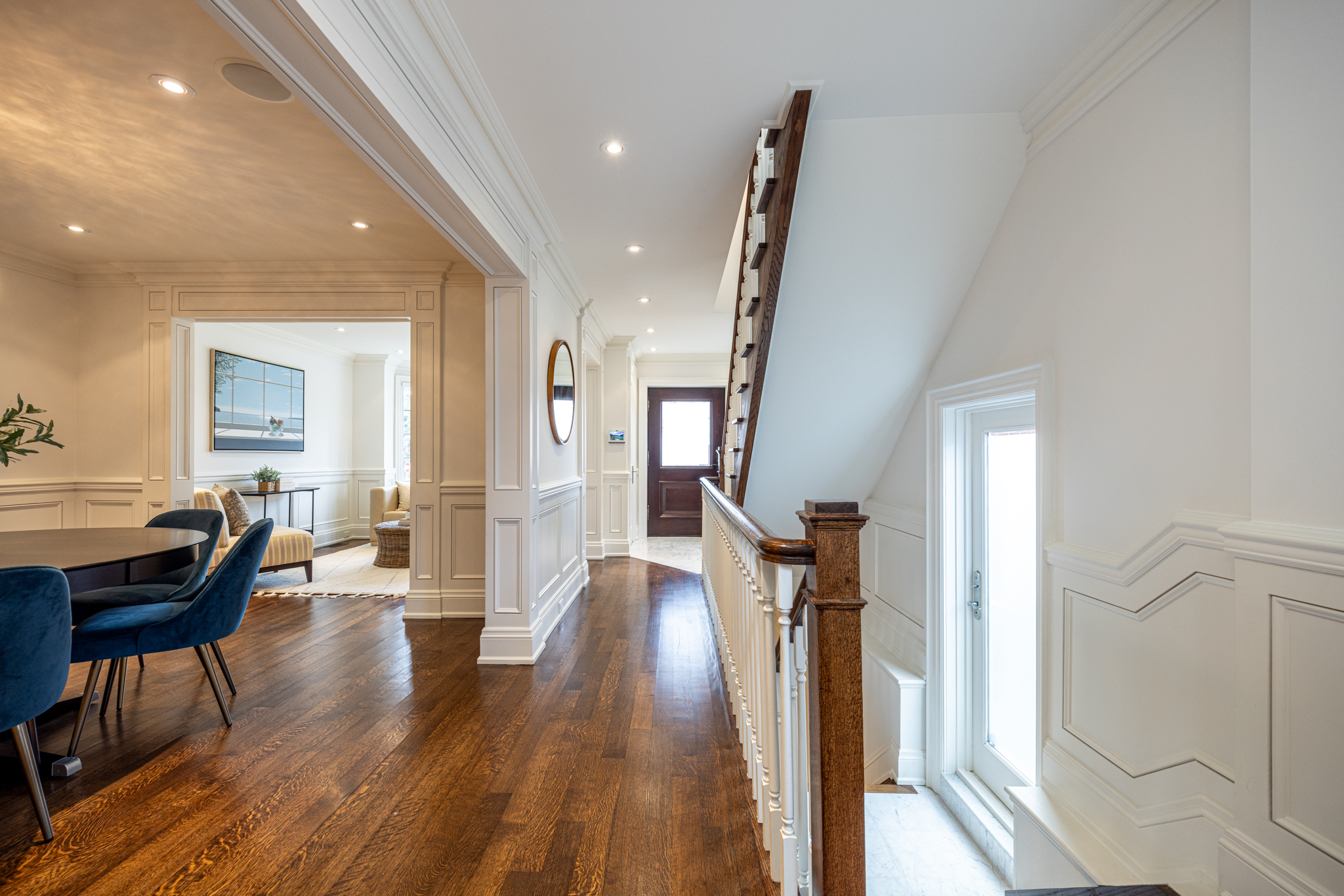 This custom-built luxury residence in Leaside offers exceptional space and presence, set on a rare 36-foot frontage along a quiet enclave on one of North Toronto’s most sought-after streets. Designed for modern family living and elegant entertaining, the main level features grand principal rooms adorned with exquisite wainscoting, creating a warm yet sophisticated atmosphere.